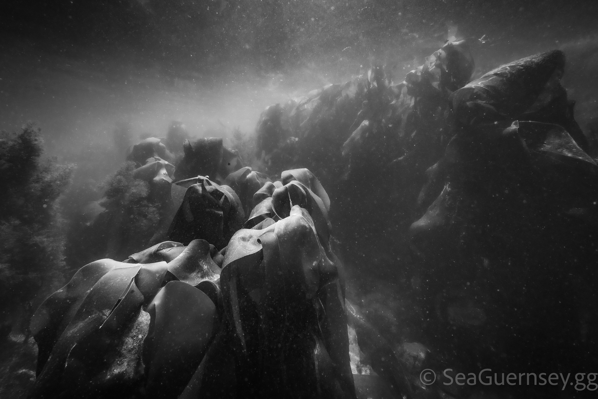 As I duck dive down and glide across the tops of the kelp forests I'm always struck by the simplistic beauty of the strong shapes of this landscape which so lends itself to monochromatic imagery.